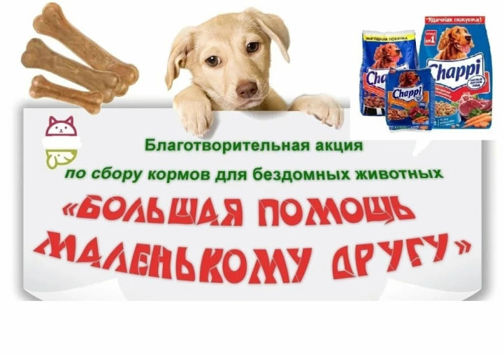 Наши братья меньшие нуждаются в вашей поддержке! Основная и самая насущная потребность – СУХОЙ И ВЛАЖНЫЙ КОРМ ДЛЯ СОБАК всех...