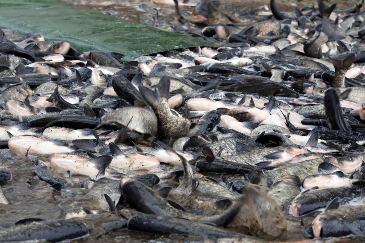 Тысячи карпов и толстолобиков поселились в Осиповичском водохранилище