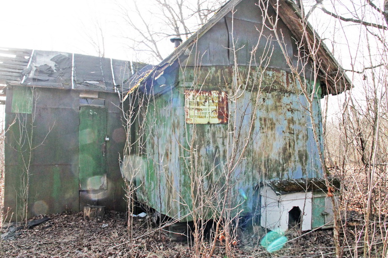 Прагульваемся па адзінай брадзішчанскай вуліцы, якая носіць назву Цэнтральная. Зацікавіла адна закінутая пабудова, што стаіць воддаль ад дарогі. На выцвілай шыльдачцы чытаем: “Карытненская прыпісная паляўнічая гаспадарка Асіповіцкага райсавета таварыства паляўнічых і рыбаловаў”. Калісьці тут збіралася нямала паляўнічых, якія прыязджалі не толькі з нашага раёна. Кінулася ў вочы сабачая будка, што прымкнула да будынка. Незвычайная, двухпакаёвая.
